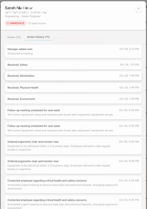 Saves hours of valuable admin time, report collating, data analysis and resource allocation. Increases your team’s output by boosting productivity and by preventing workplace injuries. The solution can help reduce costs associated with workers’ compensation claims, absenteeism, and poor engagement.
